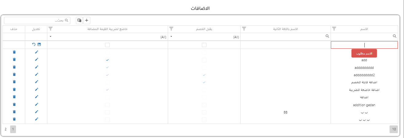 يتم التعديل علي الاضافات