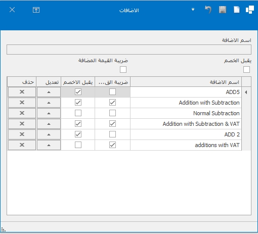 الهدف من شاشة الاضافات هي اضافة بنود في المستخلصات بالاضافه الي البنود الرئيسية