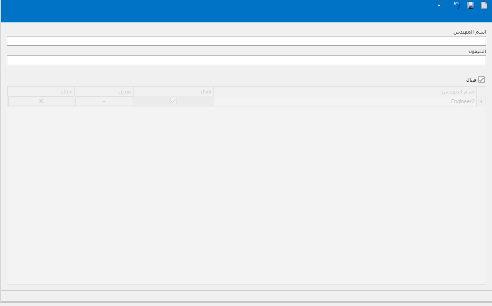 يتم إنشاء بيانات المهندسين من خلال هذه الشاشة :-