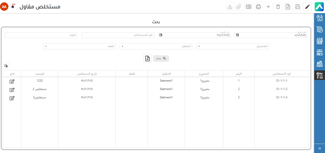 يتكون من مسلسل المشروع و مسلسل المقاول و مسلسل المستخلص