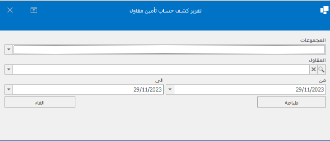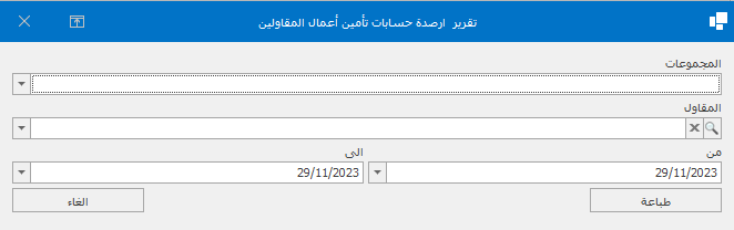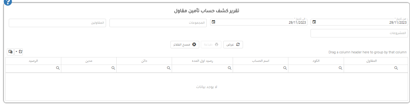 تقرير ارصدة حسابات تأمين مقاولين