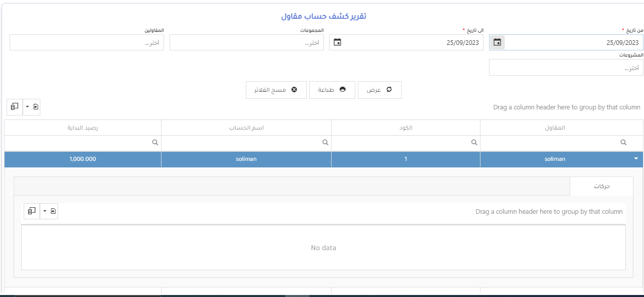 يعرض هذا التقرير ارصدة البداية والفترة للمقاول