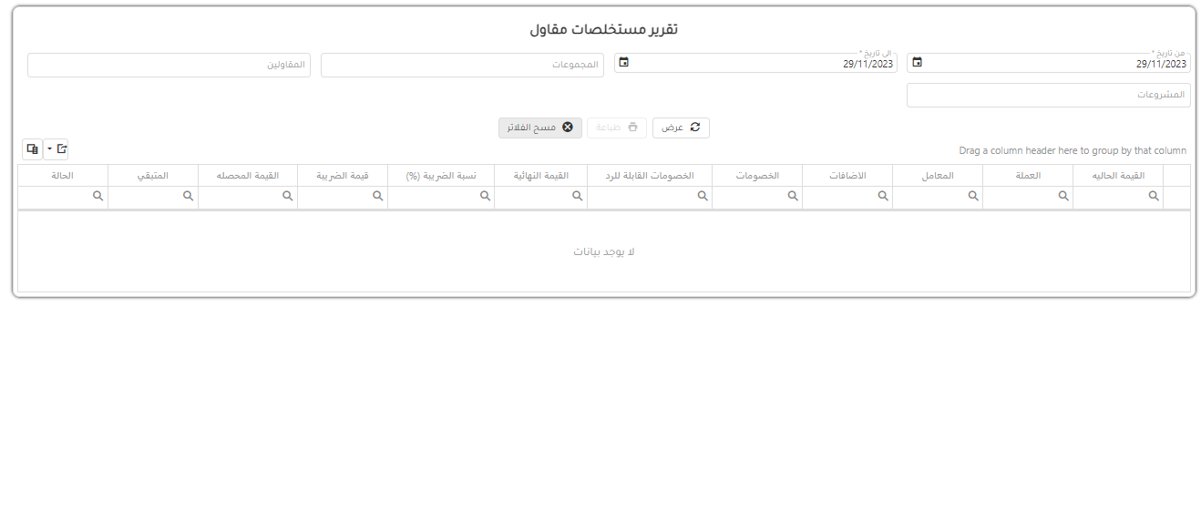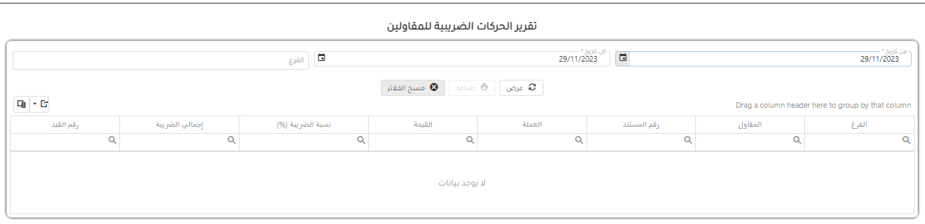 تقرير الحركات الضريبية للمقاولين