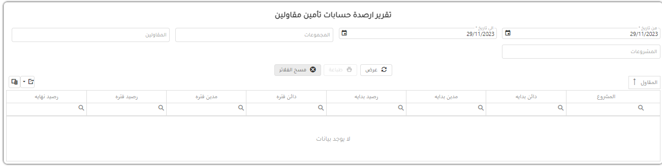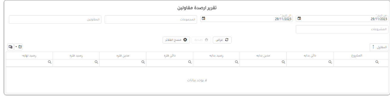تقرير ارصدة المقاولين