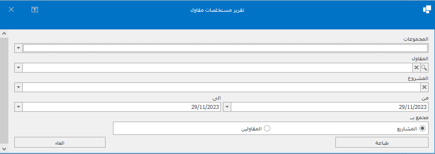 -اختيار المجموعات -اختيار المقاول -ادخال التاريخ