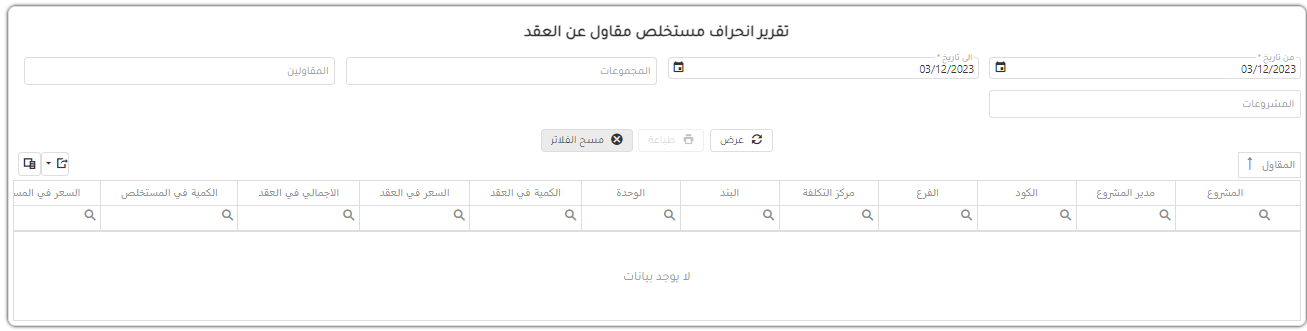 تقرير انحراف مستخلص مقاول عن العقد