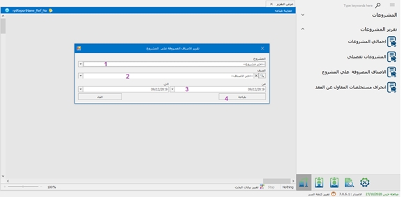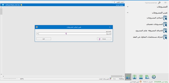 اختيار المشروع اختيار الاصناف اختيار التاريخ الضغط على طباعة