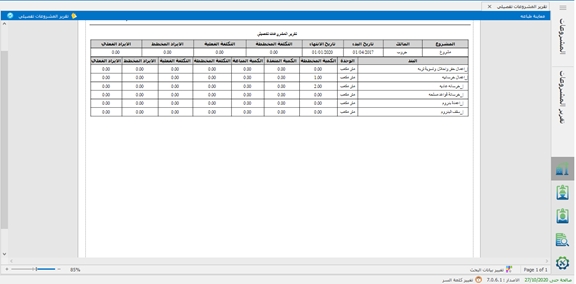 بيظهر بنود المشروع و التكلفة الفعلية و المخططة و الإيراد الفعلي و المخطط لكل بند
