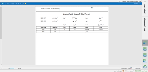 و يمكن فتح التقرير بتلك الطريقة :- اختيار المشروع اختيار الاصناف اختيار التاريخ الضغط على طباعة