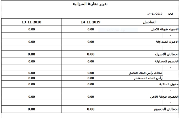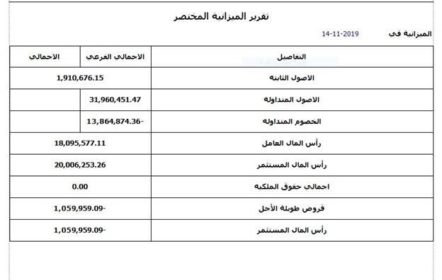 وفى هذا التقرير يبين الموقف المالى للشركة بمقابلة الأصول بالخصوم وما ينتج عنهما و يظهر التقرير بمجرد ادخال