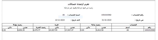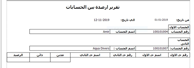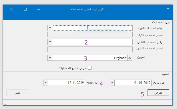 يمكن البحث بين الحسابات من خلال رقم الحساب الأول رقم الحساب الثانى اختيار الفرع ادخال الفترة التاريخ (من - إلى) ثم عرض
