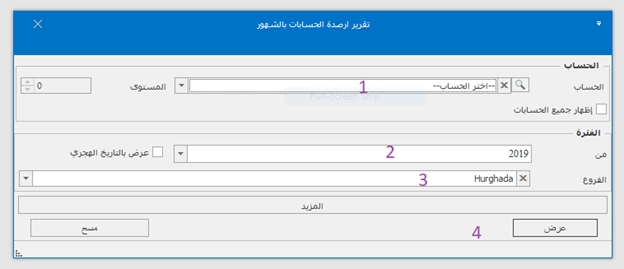 ادخال اسم / رقم الحساب المراد البحث عنه ادخال الفترة (السنة) اختيار الفرع ثم عرض
