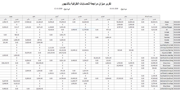 تقرير ميزان المراجعة للحسابات الطرفية بالشهور