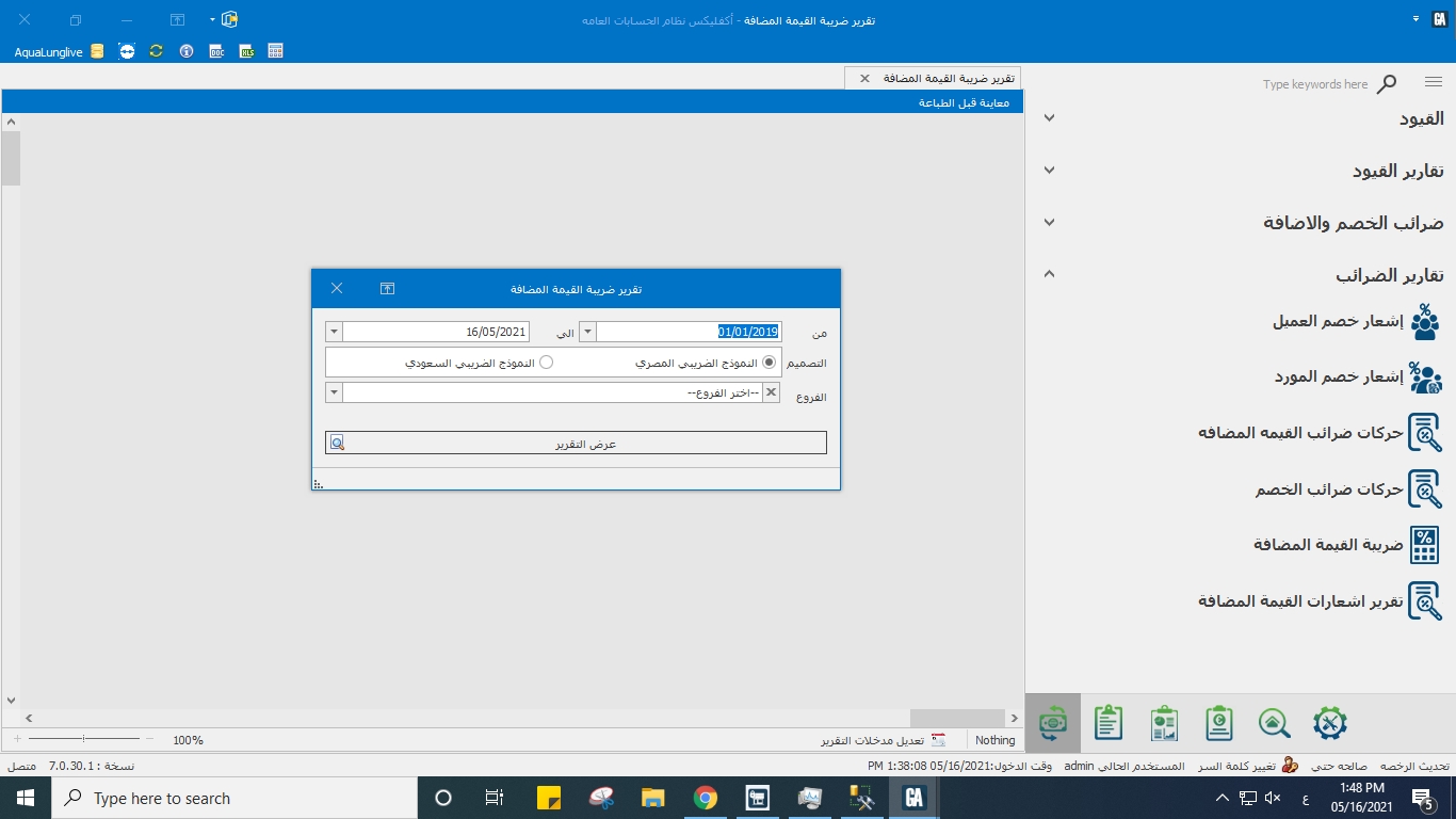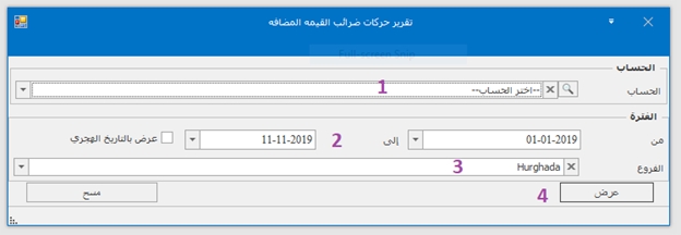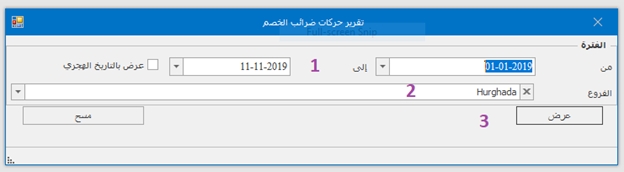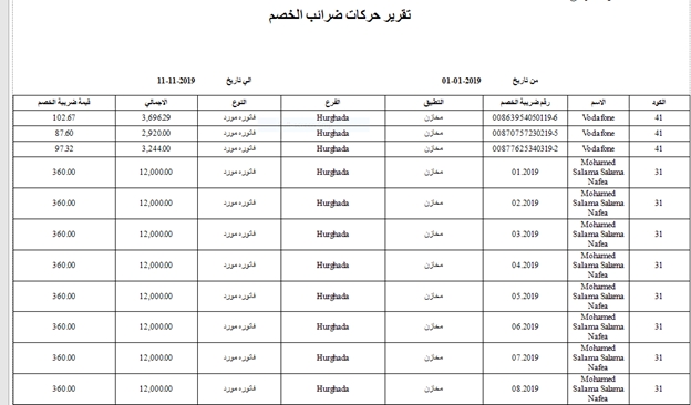 يتم عرض الحركات الضريبيه سواء مبيعات او مشتريات و على حسب الفئه الضريبيه