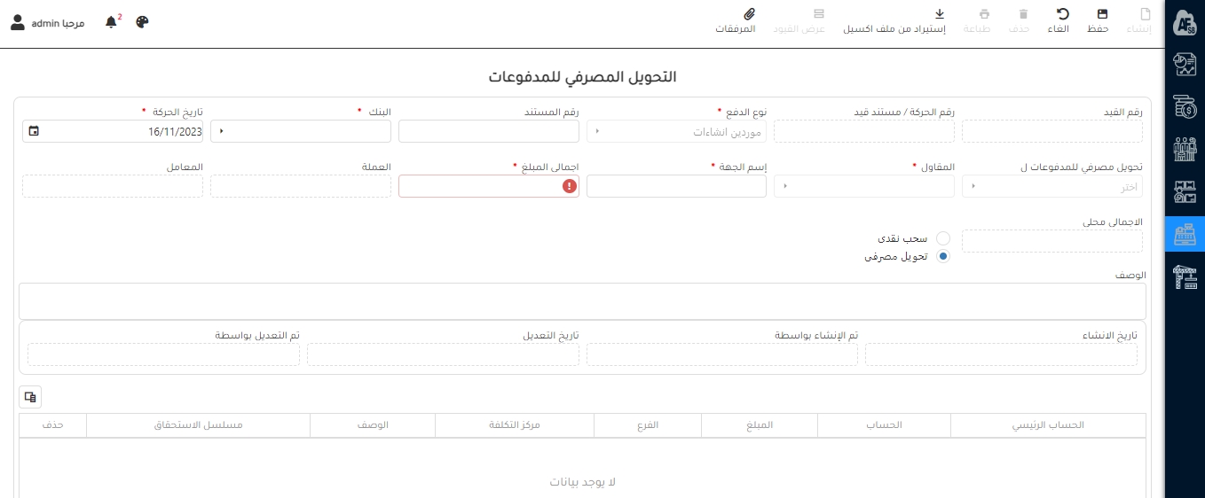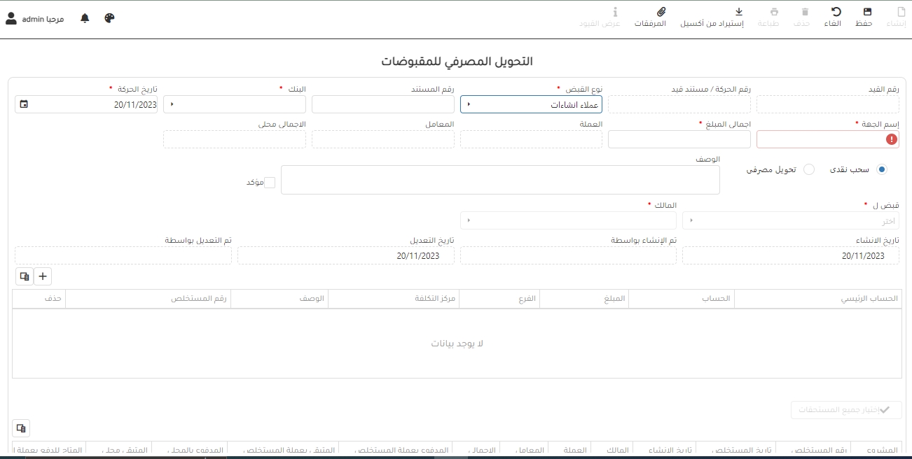 التحويل المصرفي للمقبوضات نوع انشاءات