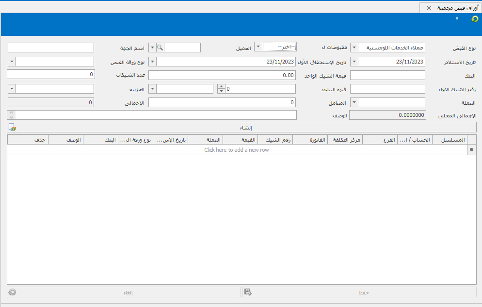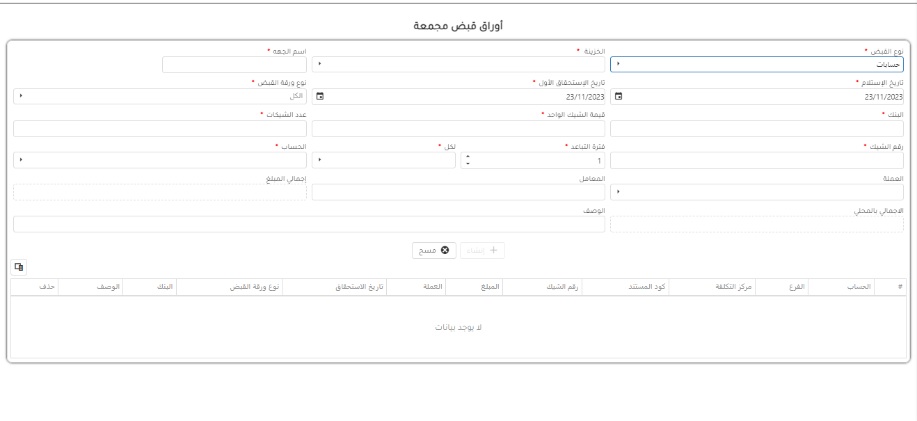 هذه الصفحة تمكننا من اضافه اكتر من ورقة للقبض مرة واحدة
