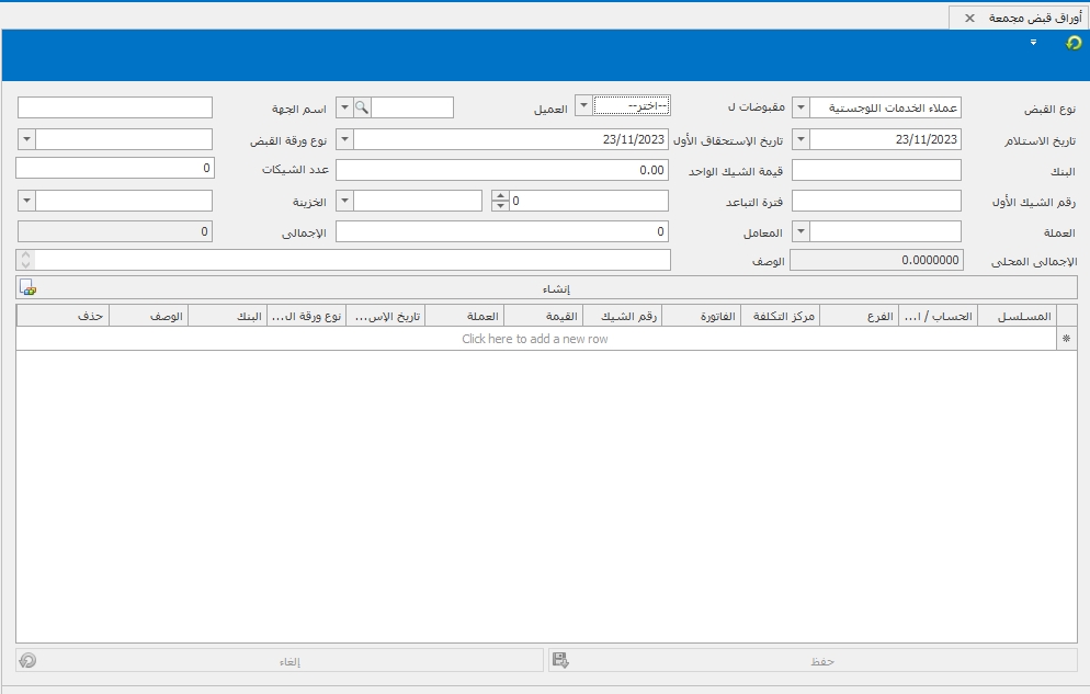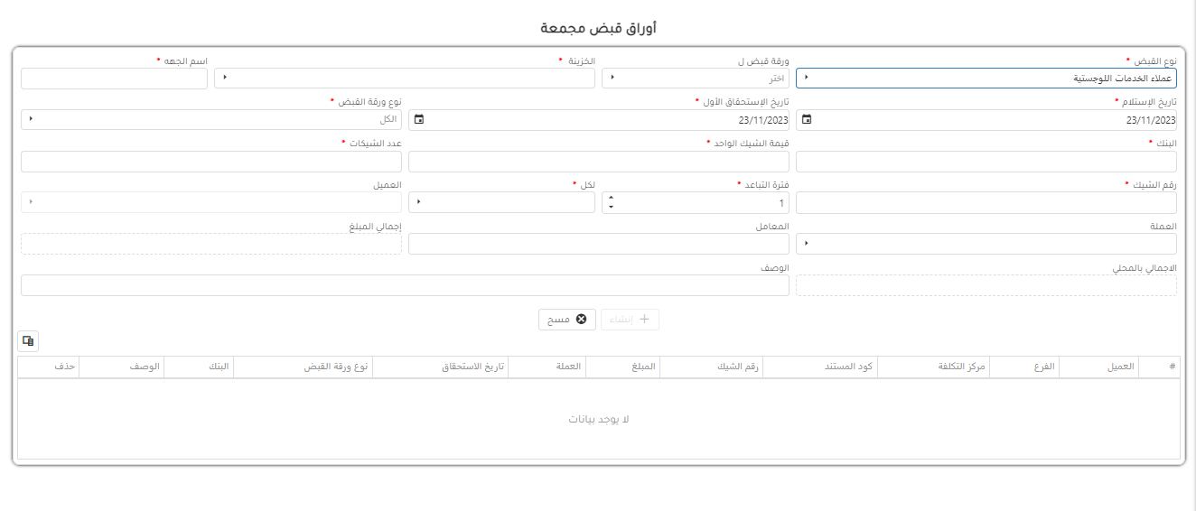 يتم انشاء اوراق قبض مجمعه نوع لوجيستك بالخطوات التالية