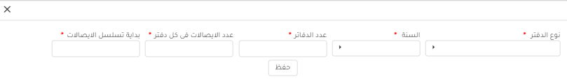4- يتم اختيار عدد الايصالات في كل دفتر ويتم تحديد بداية تسلسل الايصالات