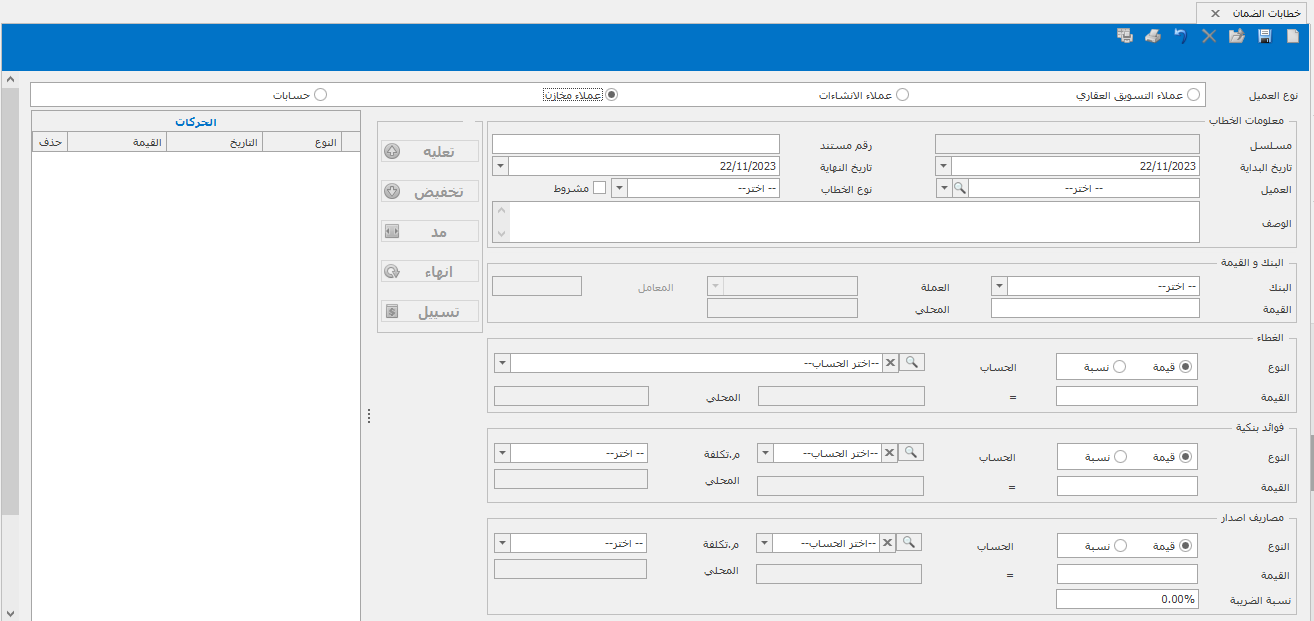 7- إمكانية إضافة ملحقات لشاشة خطابات الضمان