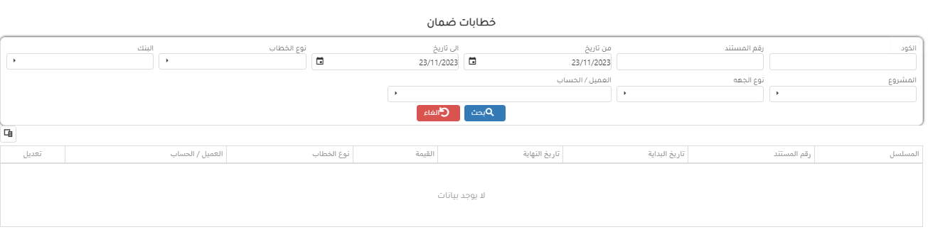 يتم انشاء خطابات الضمان بالخطوات التالية :-