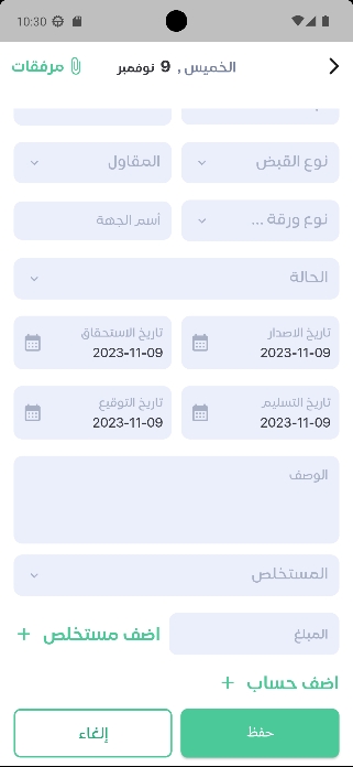 3- في حاله ان الورقه اصبحت محصل او ملغي او مرتد لا يمكن ان يعدل في اي معلومات و يكون غير مفعل ولكن في حالة انه رجع حالتها مرة اخري تم التسليم يستطيع ان يعدل بعد ما بتم الحفظ و يفتحها مرة اخري