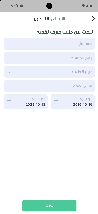 البحث بالتاريخ اختيار نوع طلب او اكثر و اذا لو يتم اختيار نوع طلب يبتم ظهور كل الانواع