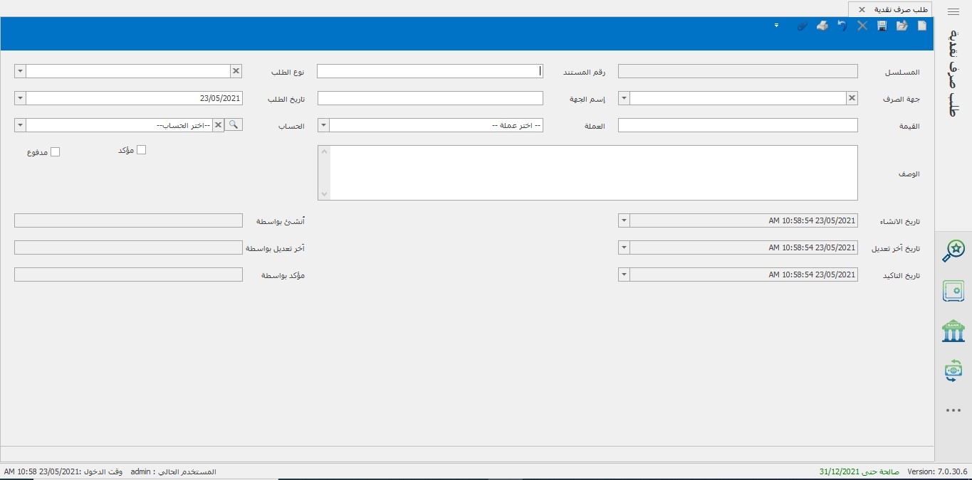 يمكن عمل طلب صرف نقديه لاسم جهه معينه و مورد او موظف او مقاول او مستثمر