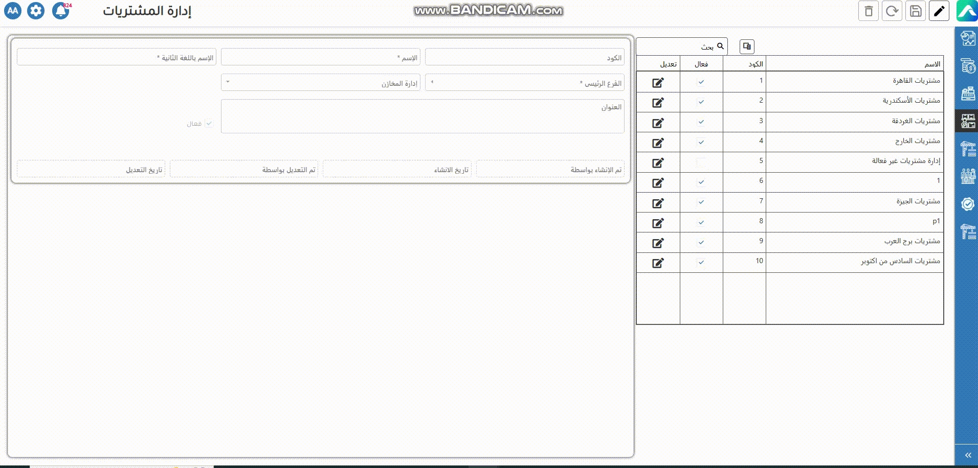 تستخدم هذه الشاشة لتهيئة إدارات المشتريات داخل النظام، حيث يتم تحديد الجهات المسؤولة عن إدارة وتنفيذ جميع عمليات الشراء، ستظهر هذه الإدارات المحددة في جميع شاشات الحركات داخل برنامج المشتريات لضمان اتساق العمليات الشرائية.