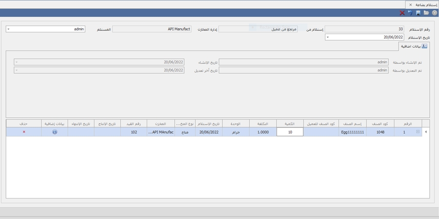 -الاول بختار نوع المرتجع اذا كان مرتجع من عميل او مرتجع من امر بيع وبعد اختيار المرتجع بيظهر الاصنافة فى شاشه الاستلام