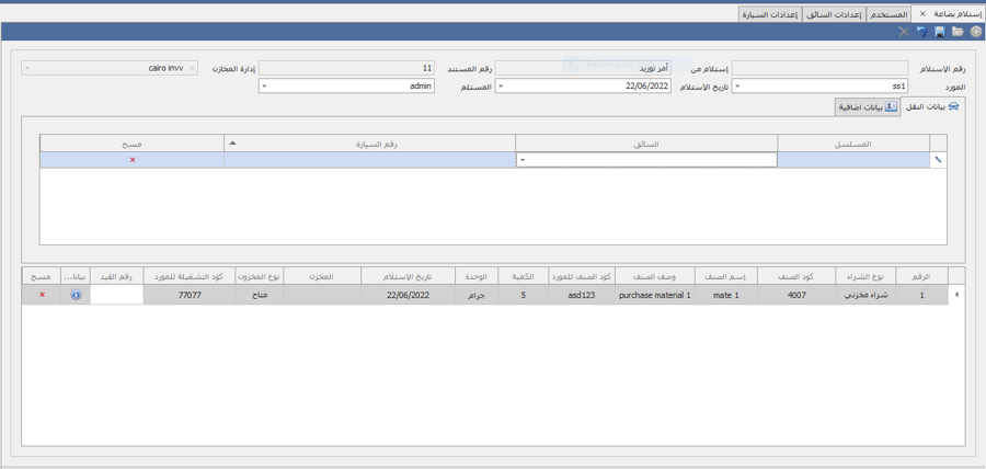 1-استلام بضاعة من امر توريد
