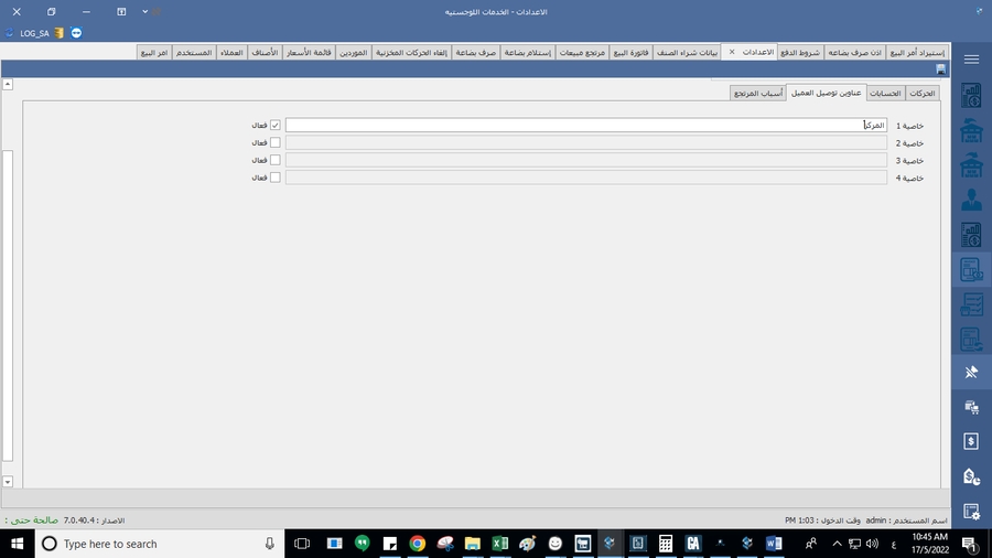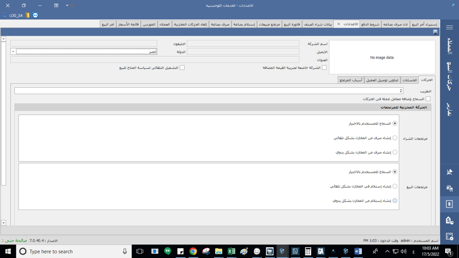 1-يوجد بها التقريب وهنا يتم كتابة رقم التقريب المراد ظهورة فى شاشة امر توريد واستلام بضاعة وصرف بضاعة والمرتجعات والفواتير .