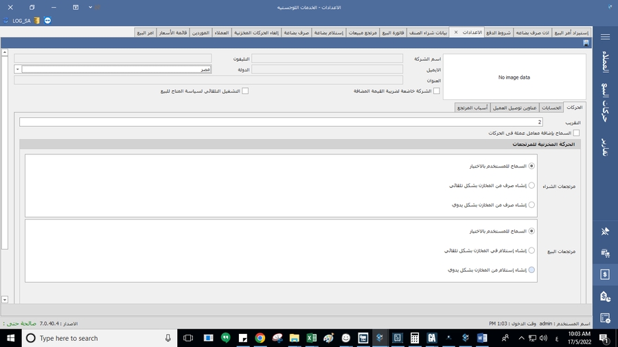 شاشة الاعدادات من خلالها يتم ضبط الاعدادات الرئيسية للشركة يتم اختيار دولة للشركة