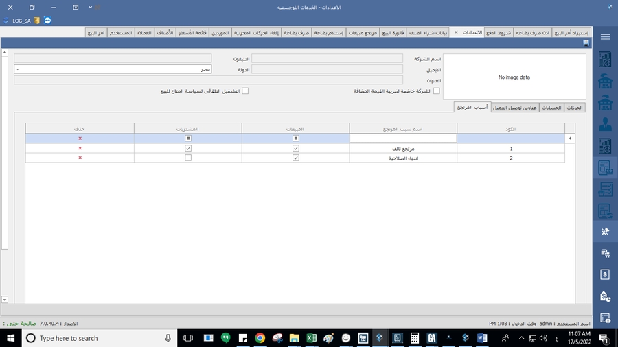 يتم كتابة ما هى اسباب مرتجعات المبيعات او مرتجعات المشتريات تظهر فى شاشة المرتجعات على حسب المستخدم فى الاعدادات تم ختيار بانها من اسباب مرتجعات المشتريات ام مرتجعات المبيعات ويمكن ايضا اختيار الاثنين معا
