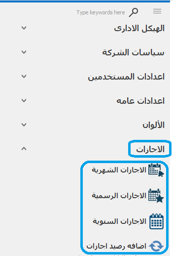 -فتح نظام جديد -ادخال اسم لنظام الإجازة -إضافة إجازة -ربط الموظفين على هذه الإجازة -ثم حفظ