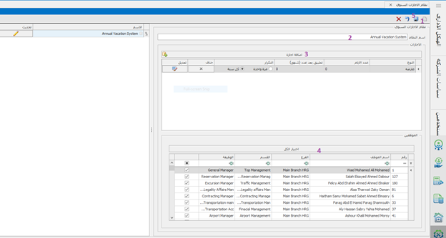 يتم تحديد النظام السنوى لكل إجازة سنوية و تفاصيلها و مرتبطة على أى موظف