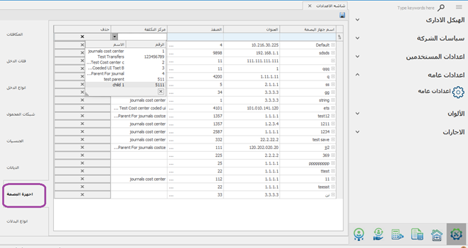 ملاحظة -ظهور مراكز التكلفة بالشكل الشجرى فى إضافة البصمات -لا يمكن اختيار مركز رئيسى