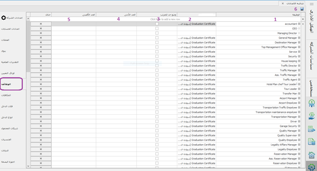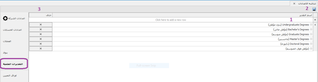 -إدخال الدرجات العلمية -حفظ -أو حذف الدرجة العلمية إن كانت الشركة لا تقبل بموظفين يحملون هذه الشهادة أو هذا المؤهل
