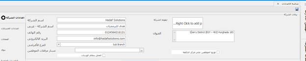 إعدادات الشركة