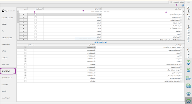 -ادخال اسم فئة الدخل -ثم حفظ -و يمكن حذف هذا الدخل