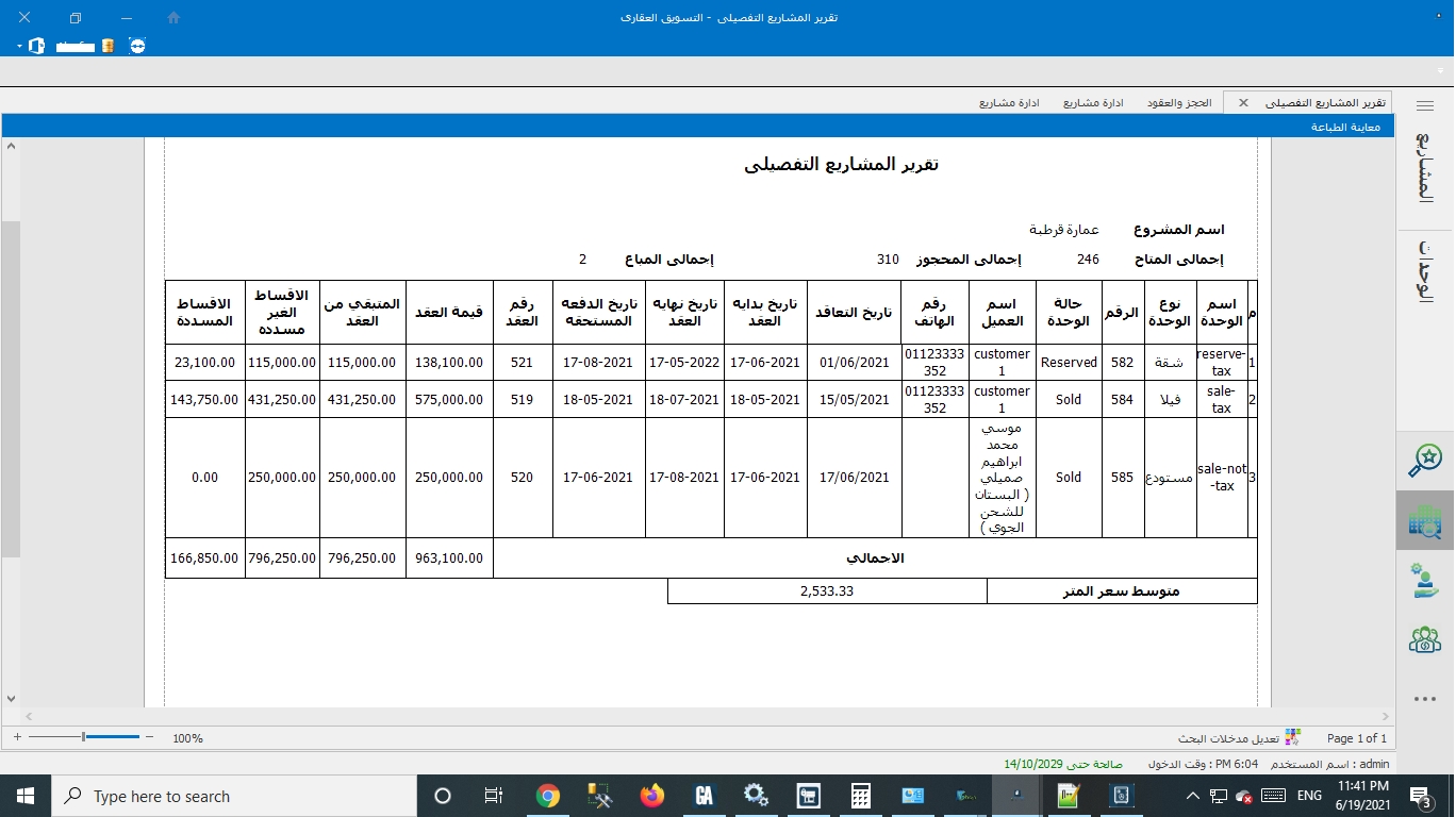 يعرض التقرير الواحدات المرتبطه بالمشروع المختار و تفاصيلها و يتم اختيار المشروع و الحاله و نوع العقار في شاشه البحث و امكانيه اظهار الوحدات بتاريخ العقد و الوحدات المسدده حتى تاريخ
