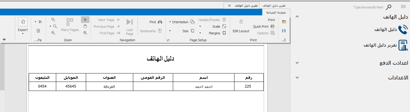 تقرير دليل الهاتف