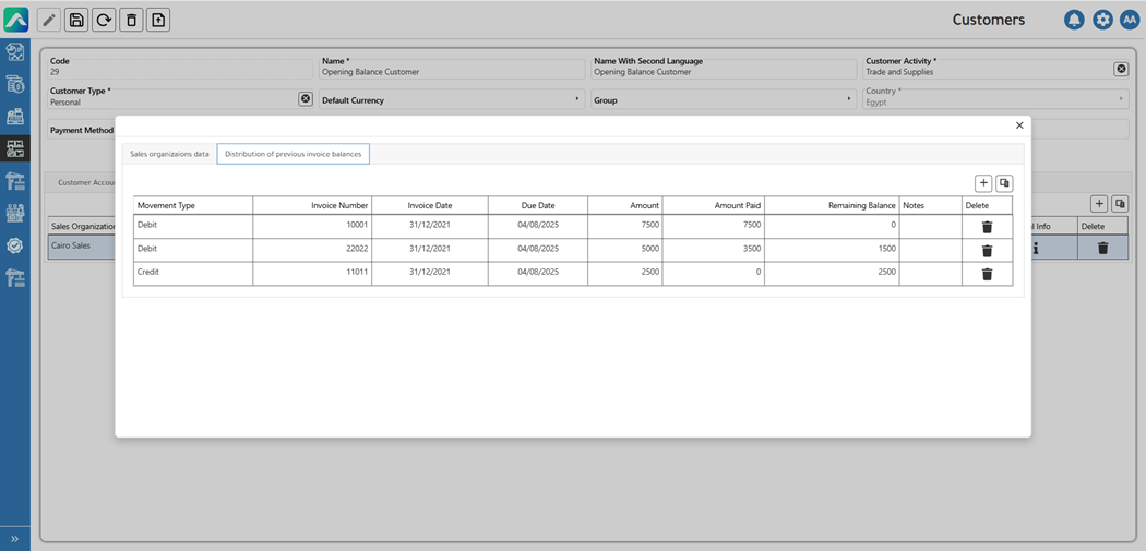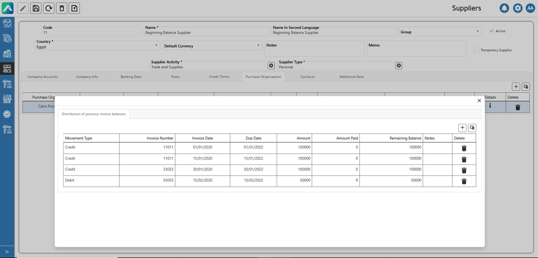 Ability to distribute the suppliers and customers beginning balances into separated previous invoices.