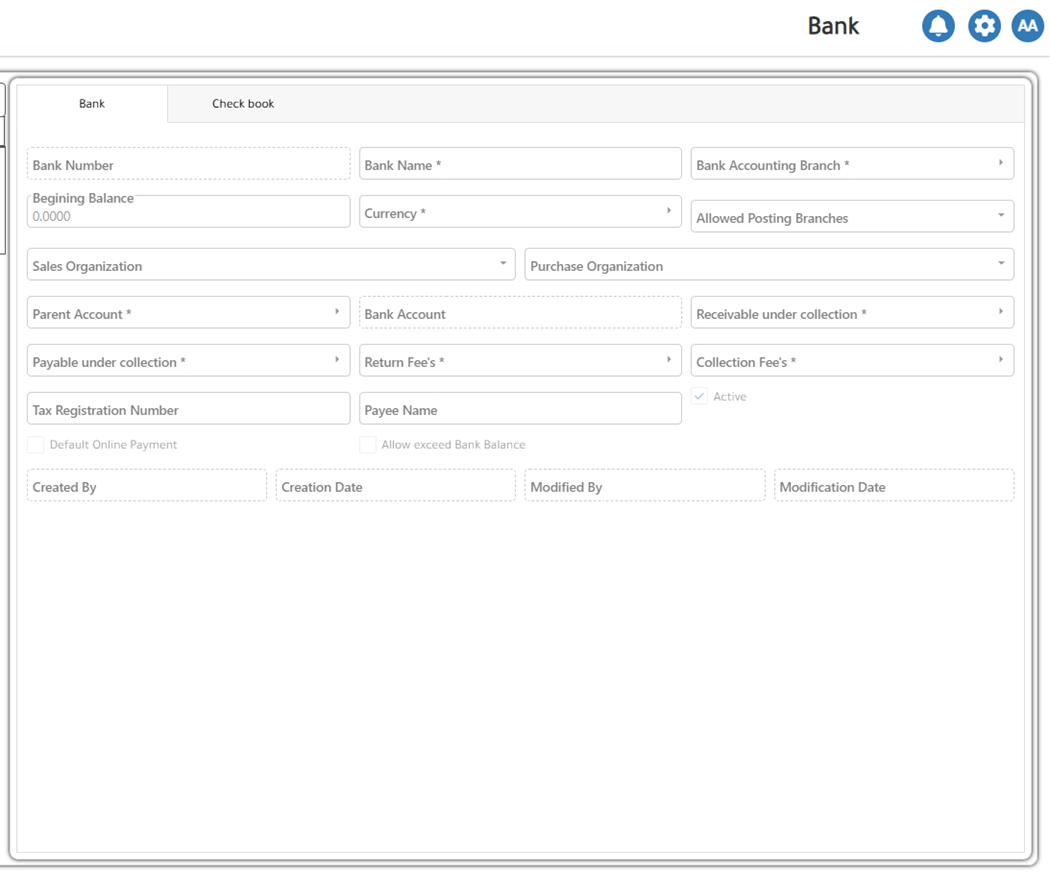 · A new checklist, "Permitted Accounting Branches", has been added. It is active and displays all active branches linked to the user.