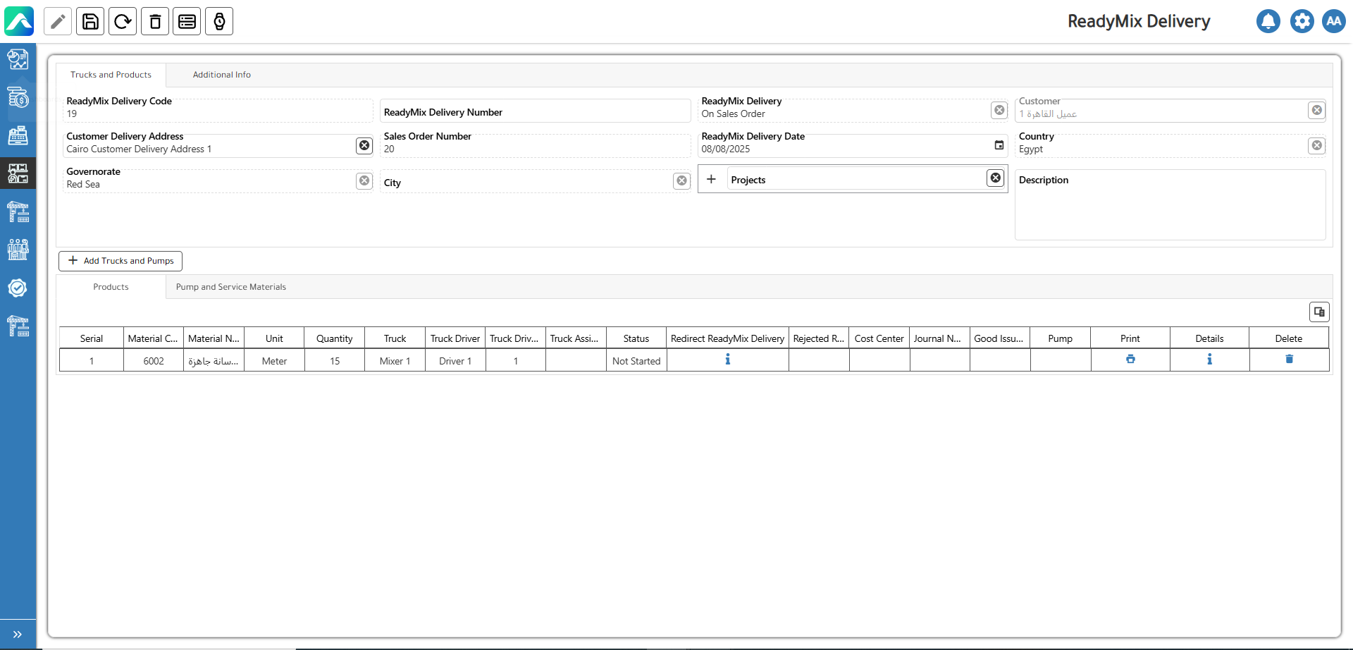 Allow creating a delivery plan from the Sales Order screen: The ability to create a delivery plan directly from the Sales Order screen has been added ‒ button “+” ‒to simplify the process of scheduling order deliveries. This option enables the user to prepare a plan that includes all delivery details, including pump information, without the need to navigate to another screen.