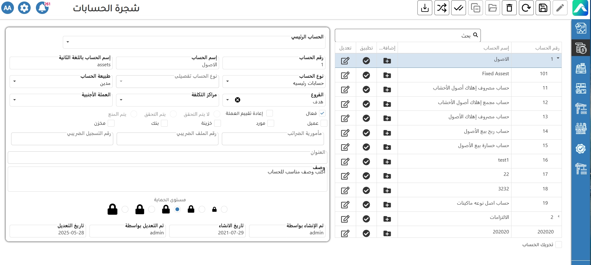 • إعداد شجرة الحسابات لجميع الحسابات المستخدمة في نظام تخطيط موارد المؤسسات (ERP) لتسجيل المعاملات.